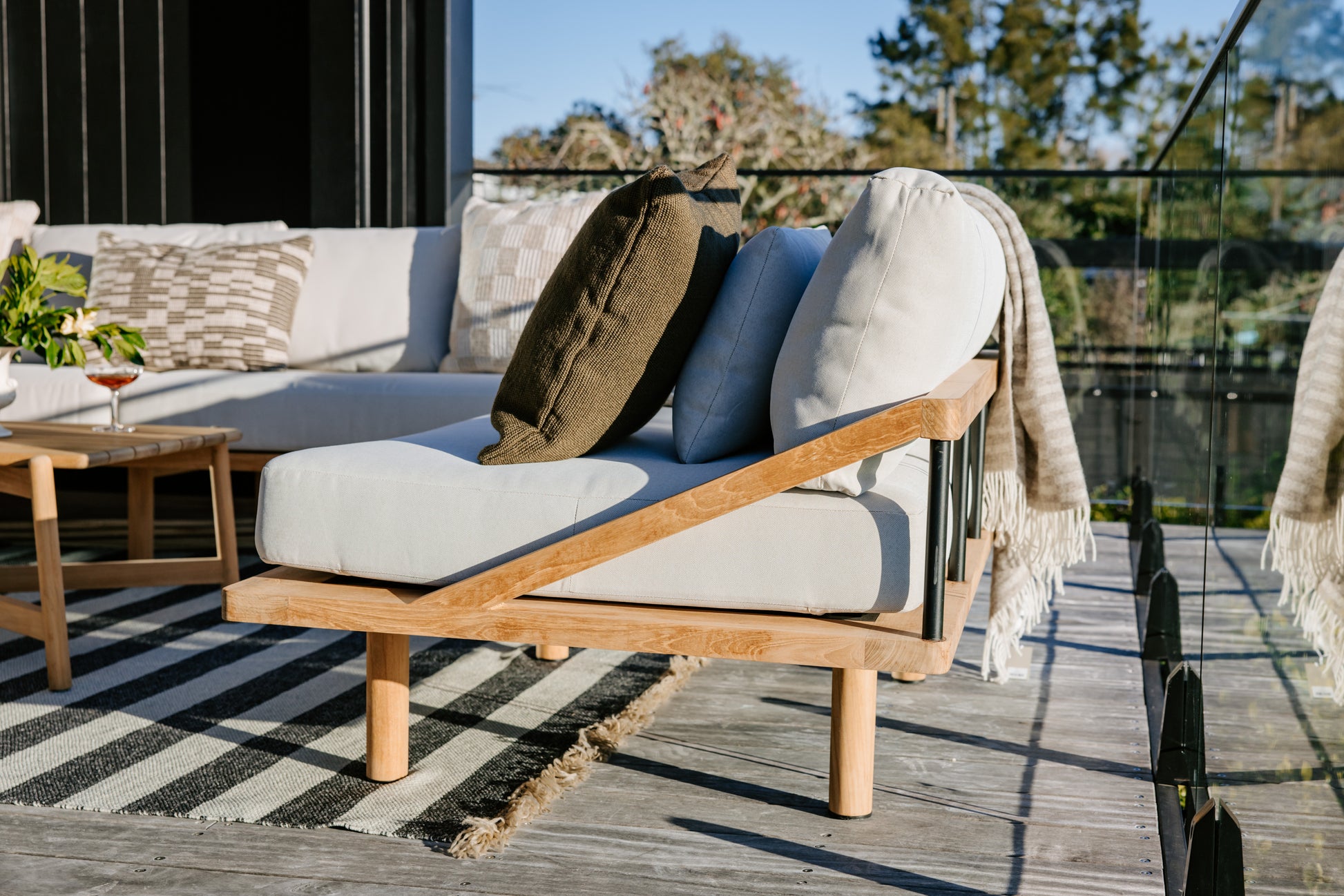 Material: A-Grade Teak,Powder coated Aluminium, Sunproof® Outdoor Fabric